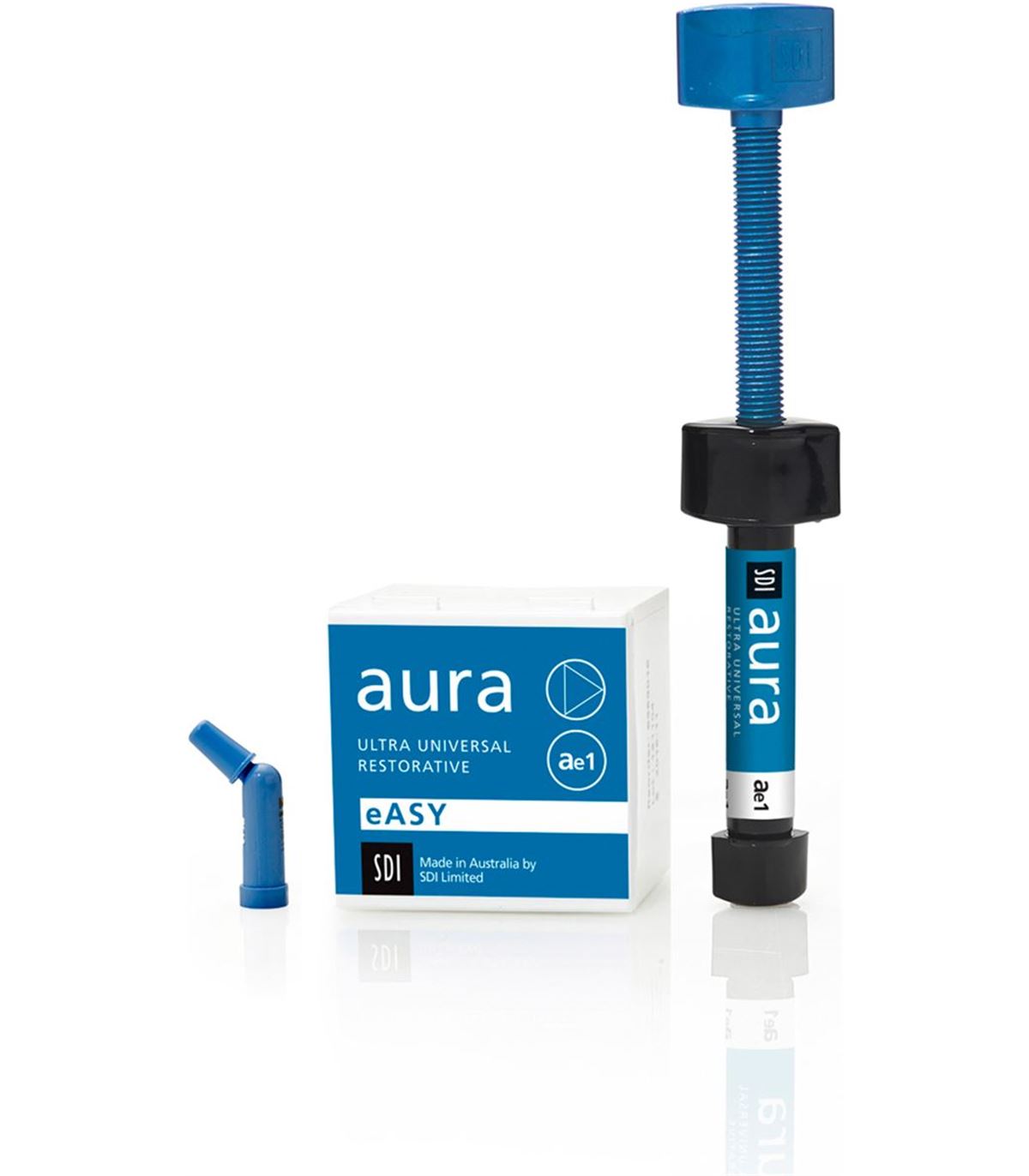 Elija el tono de esmalte a partir del borde incisal del diente adyacente. Los tonos de esmalte de Aura E1, E2 y E3 son de tipo microrrelleno para facilitar un pulido con acabado de espejo y alto brillo que se conservará indefinidamente.