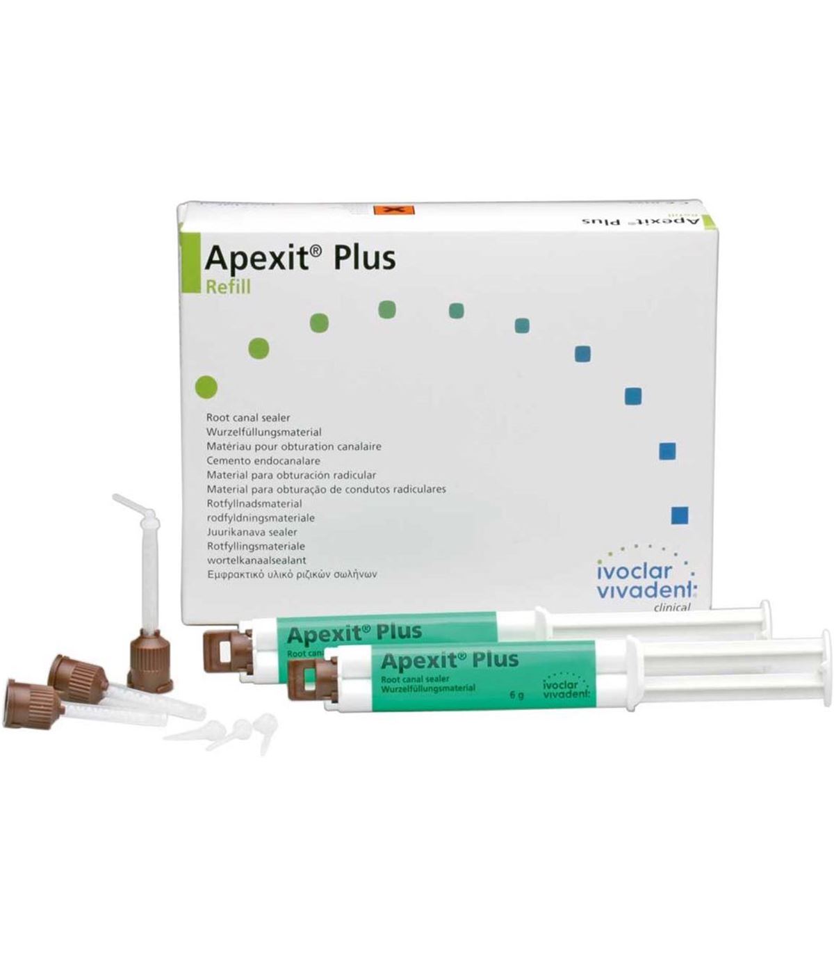 Ventajas Gracias a su nueva composición, Apexit Plus está especialmente indicado para todas las técnicas de obturación donde se use gutapercha. No contiene formaldehídos ni sustancias farmacológicas como corticoides y antibióticos. Gracias a su buena fluidez, Apexit Plus puede emplearse también en situaciones de morfología radicular poco favorables.